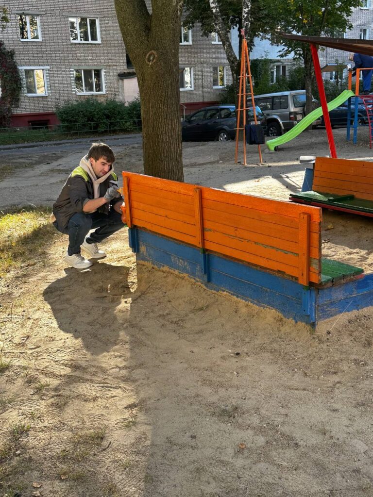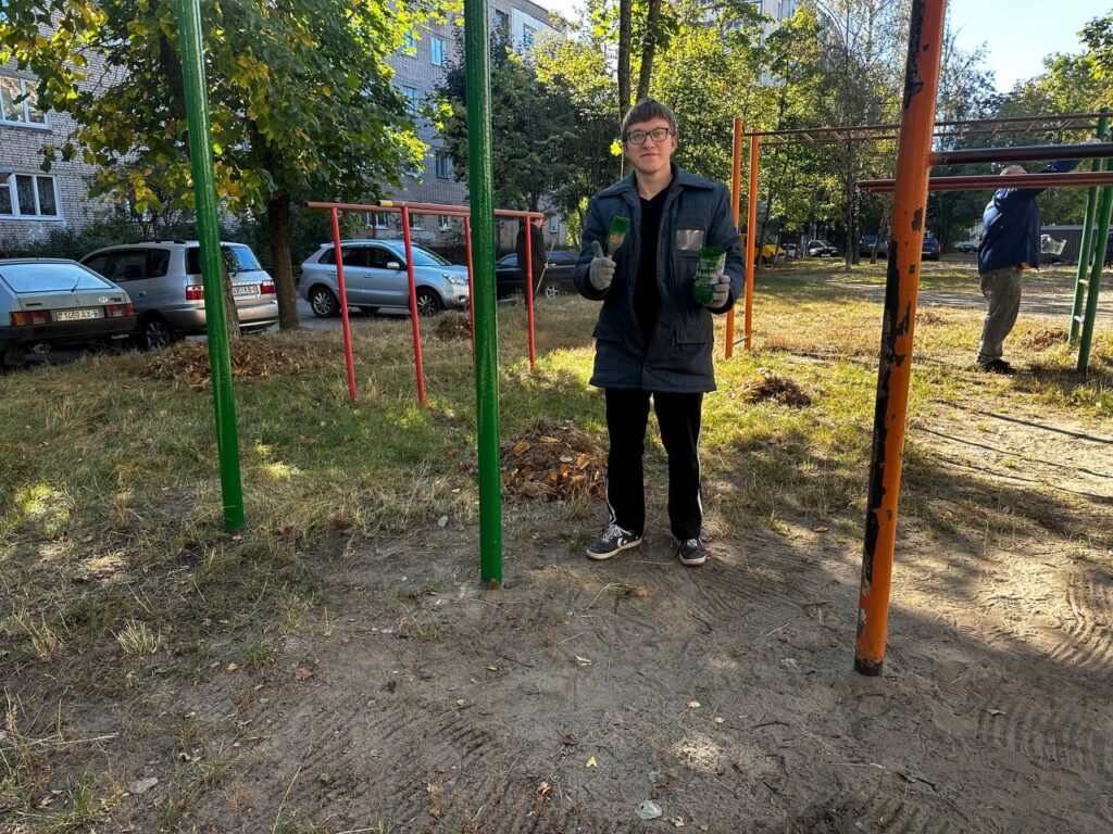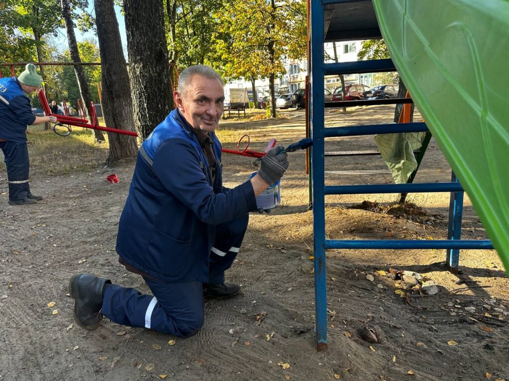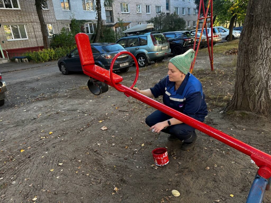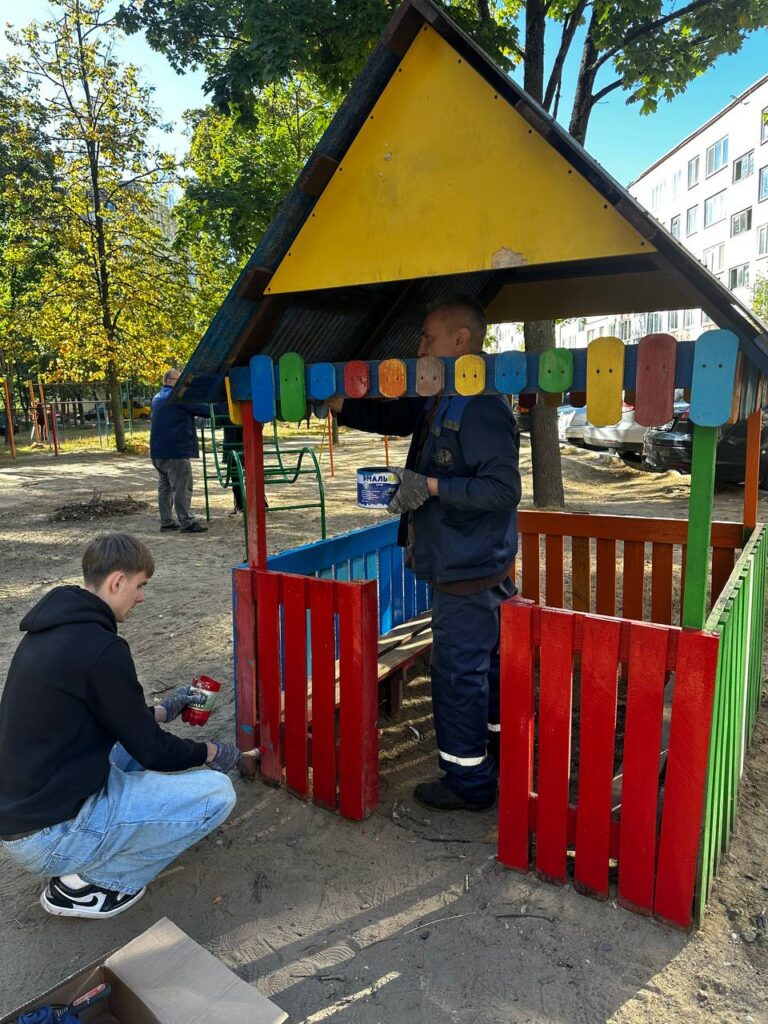 25 сентября во дворе домов 16 и 18 на бульваре Комарова стало значительно чище, красивее и уютнее. Силами работников предприятия сегодня здесь была благоустроена территория — убран мусор и листва, приведена в порядок и окрашена детская площадка.