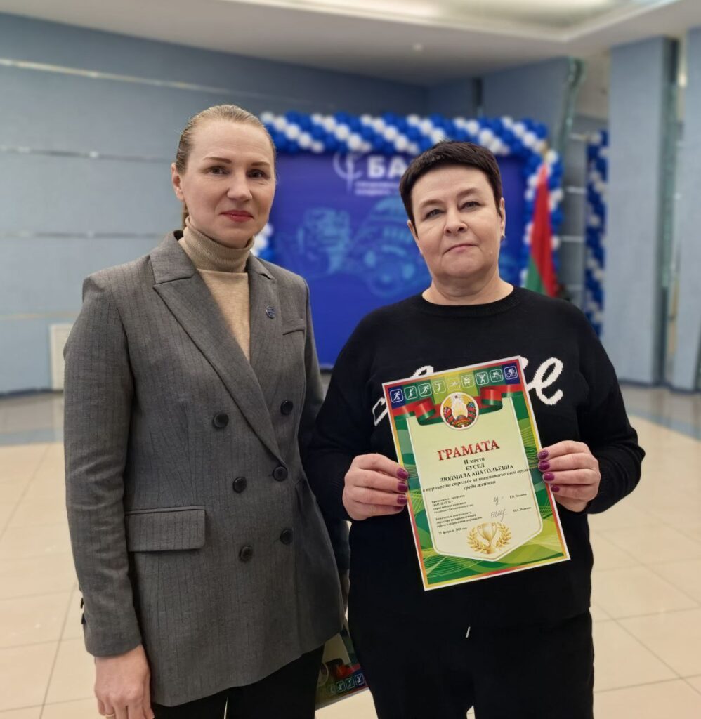 Она отмечена Грамотой Профсоюза «БЕЛПРОФМАШ» за добросовестный труд и активную работу в профсоюзной организации.
