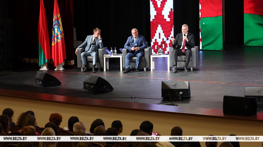 Поделиться опытом и рассказать о достижениях современной Беларуси за годы ее Независимости и перспективах развития во Дворец культуры им. М. Горького прибыли генеральный директор Национальной библиотеки Беларуси, кандидат исторических наук Вадим Гигин, депутат Палаты представителей Национального собрания Республики Беларусь Руслан Косыгин, политический обозреватель телеканала ОНТ Игорь Тур.