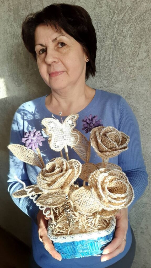 — Мне очень нравится что-то делать своими руками. Часто пробую новые техники, чтобы найти то, что мне по душе. В прошлом году на предприятии прошел конкурс «Красота своими руками». Это подстегнуло меня на изучение техники изготовления цветов из мешковины. Посмотрела в интернете как это делается, нашла материал и попробовала. Получилось очень даже неплохо.