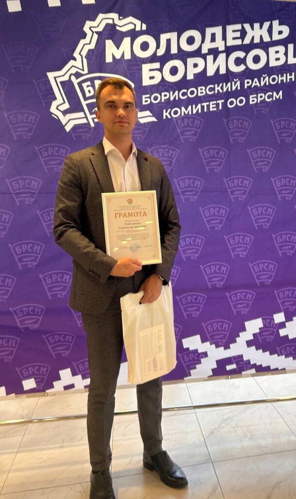 За активное участие в социально-значимых, патриотических, творческих и спортивных мероприятиях, реализуемых Борисовской районной организацией ОО «БРСМ» Станислав Рутковский, ведущий специалист по маркетингу отдела маркетинга награжден грамотой Борисовского районного комитета ОО «БРСМ».