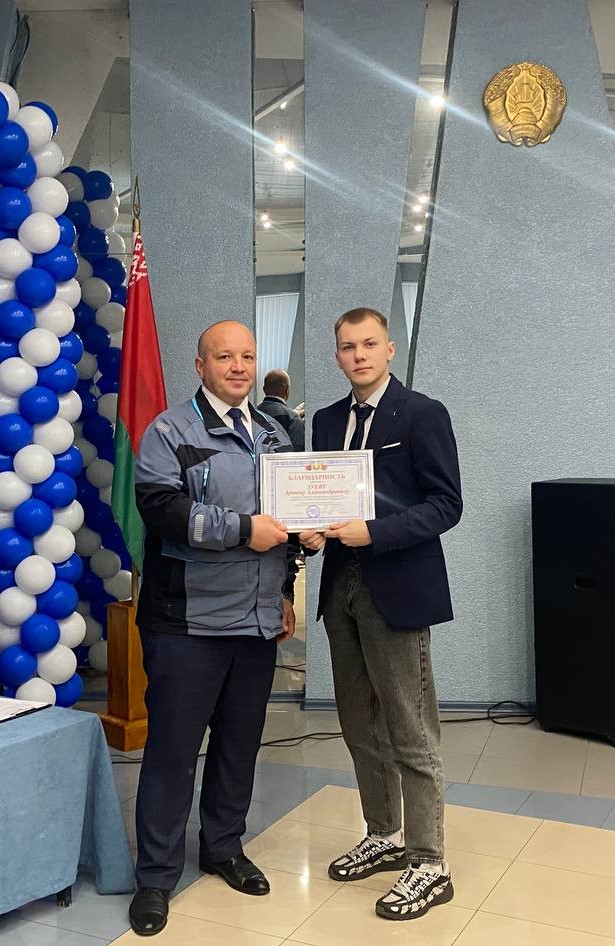 Его трудовой путь на БАТЭ начался в 2023 году. Он пришел на завод после учебы в Филиале БНТУ «БГПК» слесарем по обслуживанию и ремонту газоиспользующего оборудования цеха №5.
