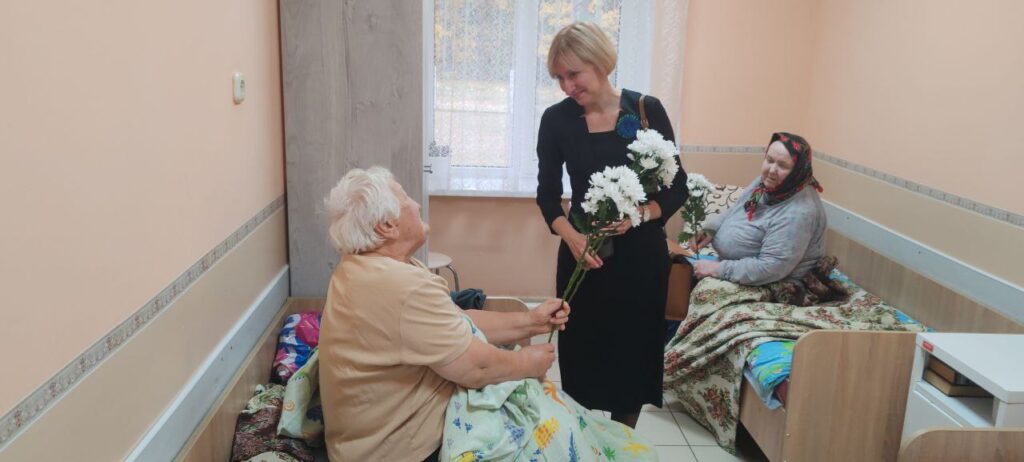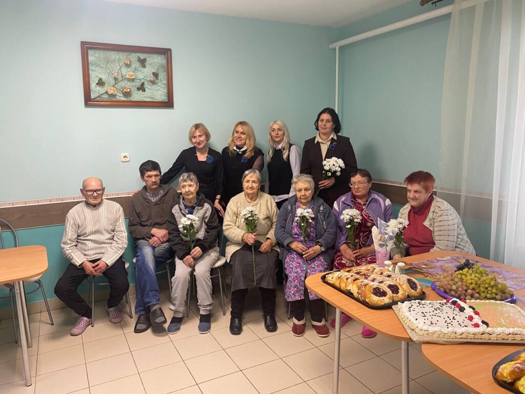Представительницы предприятий преподнесли каждому постояльцу отделения цветы и подарки, а также передали вкусную домашнюю выпечку, которая обязательно порадует пожилых людей не только вкусом, но и напомнит о семейных теплых традициях.