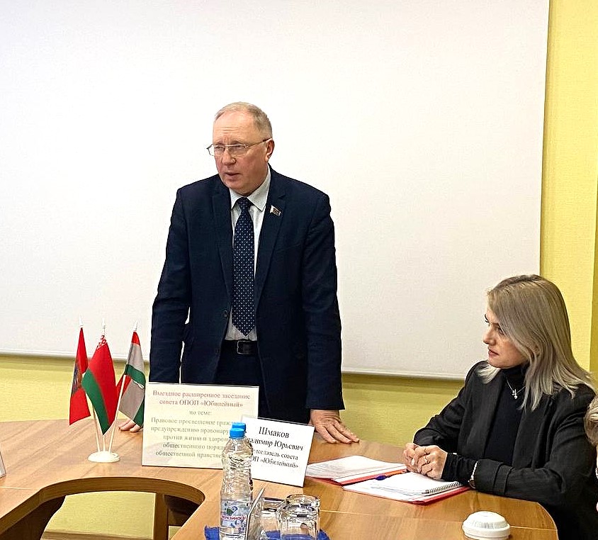 О деятельности совета ОПОП «Юбилейный» по профилактике правонарушений и укреплению общественного порядка информацию присутствовавшим довел председатель совета ОПОП — директор Борисовского государственного технического колледжа, депутат Минского областного Совета депутатов Владимир Шмаков.